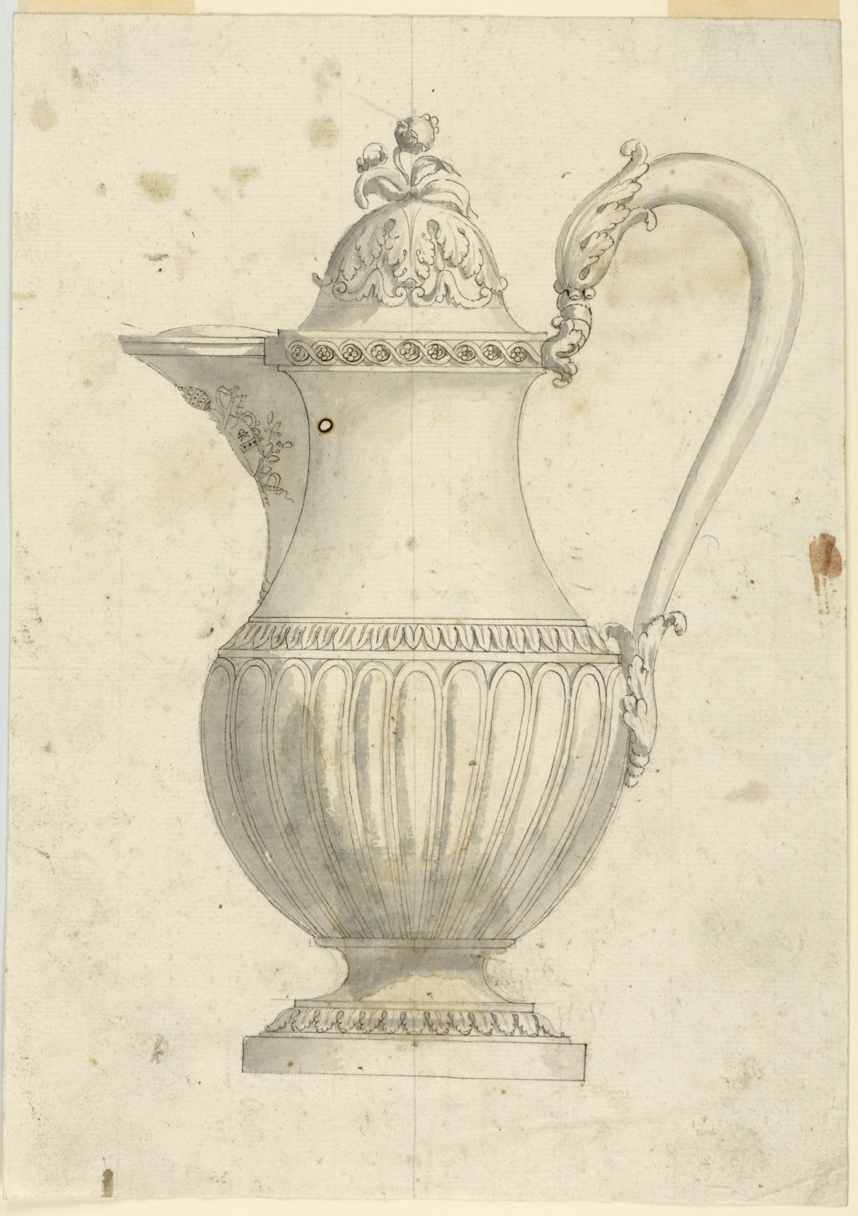Drawing, Design for a Coffeepot; Italy; pen and brown ink, brush and gray wash, graphite on paper; 26.3 x 18.7 cm (10 3/8 x 7 3/8 in.); Museum purchase through gift of various donors and from Eleanor G. Hewitt Fund; 1938-88-5980