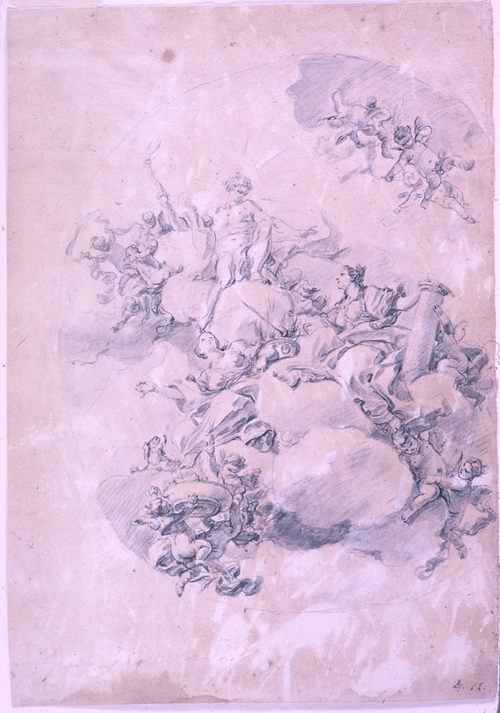 Drawing, Study for an Oval Ceiling Design, Apollo, Strength, and Love