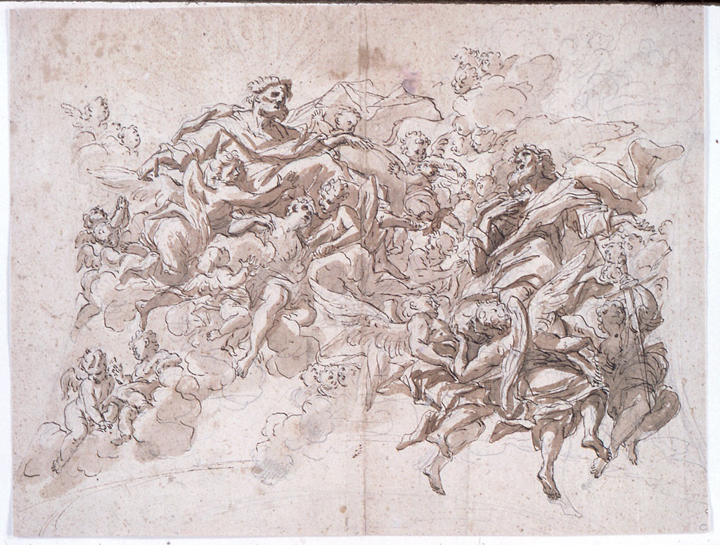 Drawing, Apotheosis of a Saint; Corrado Giaquinto (Italian, 1703 - 1765); Italy; pen and brown ink, brush and brown wash, black chalk on cream laid paper; 32.6 x 42.7 cm (12 13/16 x 16 13/16 in.); Museum purchase through gift of various donors and from Eleanor G. Hewitt Fund; 1938-88-6523
