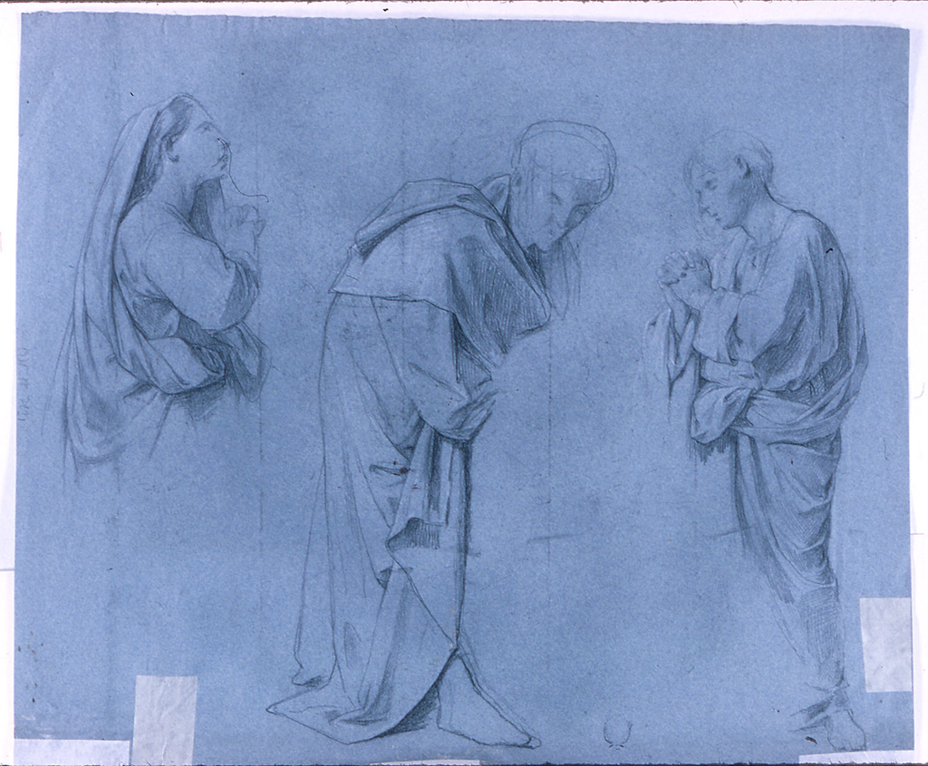 This is a Drawing. It was created by Francesco Grandi. It is dated 1860–1861 and we acquired it in 1938. Its medium is crayon, carbon on blue paper.. It is a part of the Drawings, Prints, and Graphic Design department.
