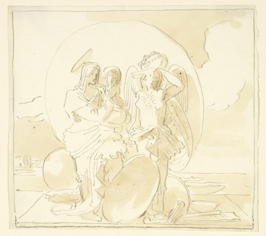 Drawing, Madonna and Angel; Fortunato Duranti (Italian, 1787 - 1863); Italy; pin and ink, brush and light brown watercolor on paper; 18 × 19.9 cm (7 1/16 × 7 13/16 in.); Museum purchase through gift of various donors and from Eleanor G. Hewitt Fund; 1938-88-7369