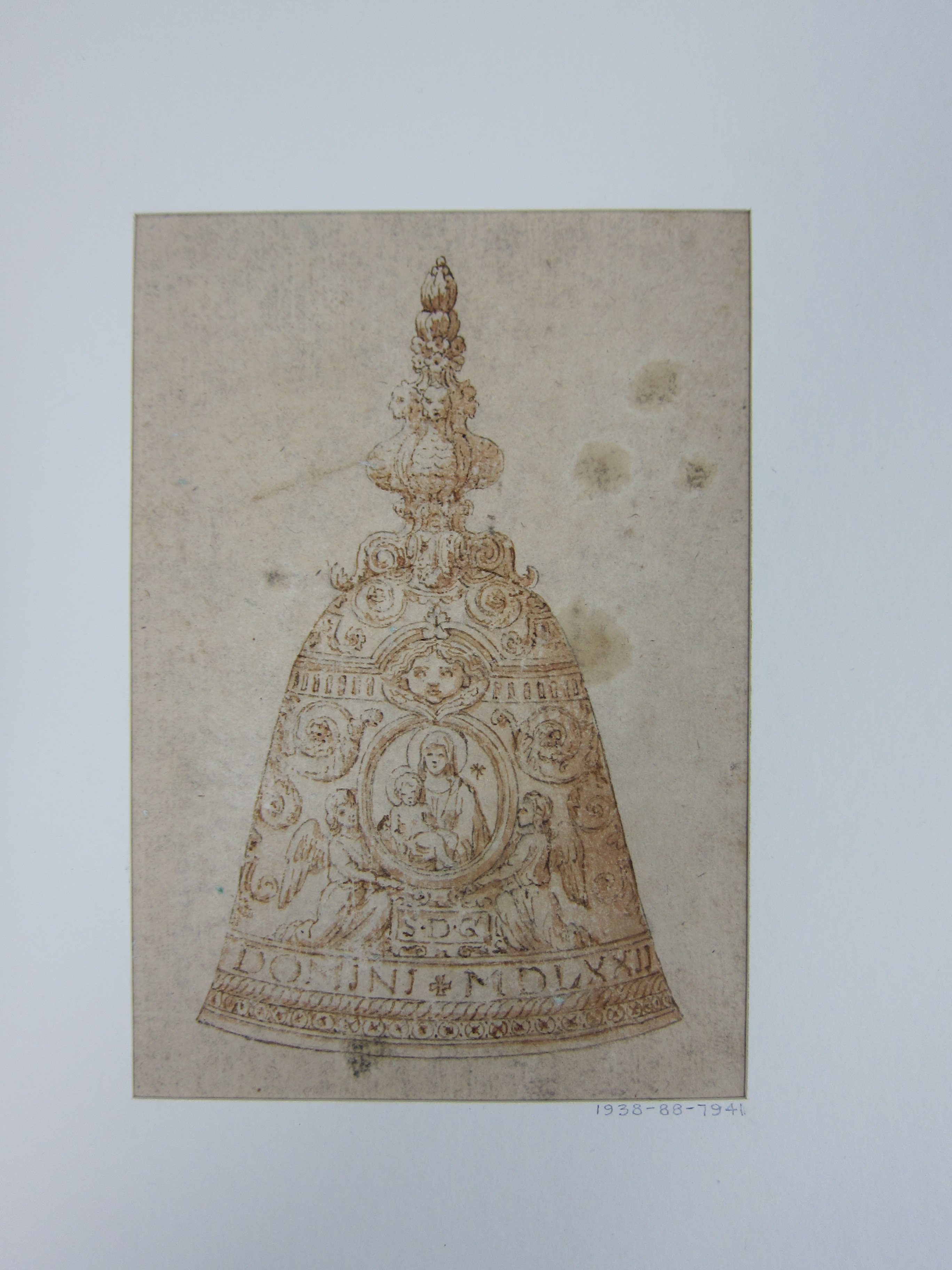 Drawing, Hand bell; Italy; pen, sepia and red-brown watercolor on brown-grey paper; H x W: 17.5 x 12.9 cm (6 7/8 x 5 1/16 in.); Museum purchase through gift of various donors and from Eleanor G. Hewitt Fund; 1938-88-7941