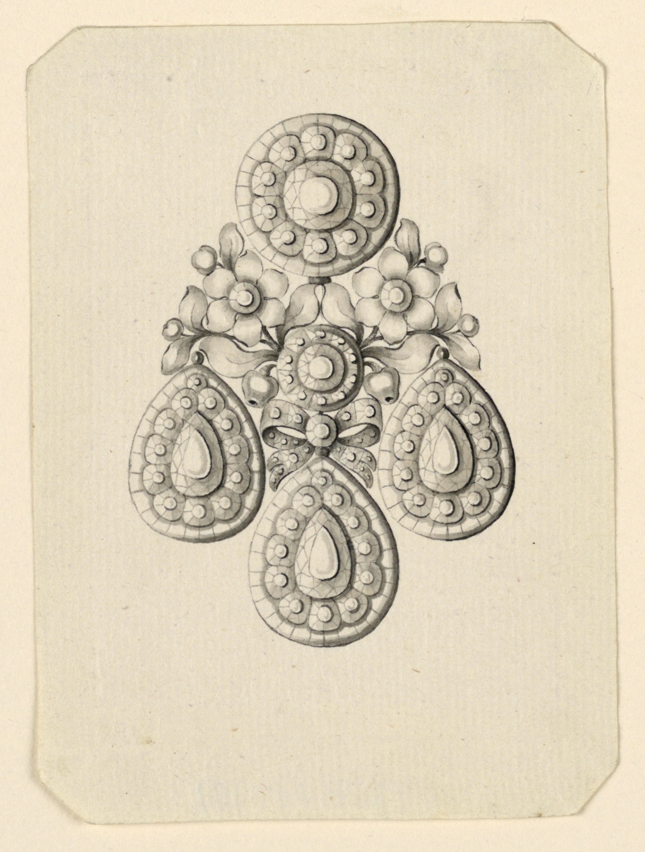 Drawing, Design for an Earring; Italy; pen and black ink, brush and gray watercolor on light green paper; 13.5 × 9.8 cm (5 5/16 × 3 7/8 in.); Museum purchase through gift of various donors and from Eleanor G. Hewitt Fund; 1938-88-807