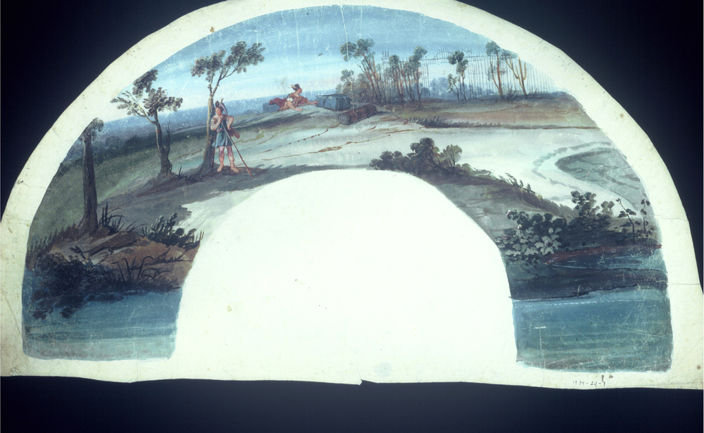 This is a Fan leaf. It is dated late 18th century and we acquired it in 1939. Its medium is painted paper. It is a part of the Textiles department.
