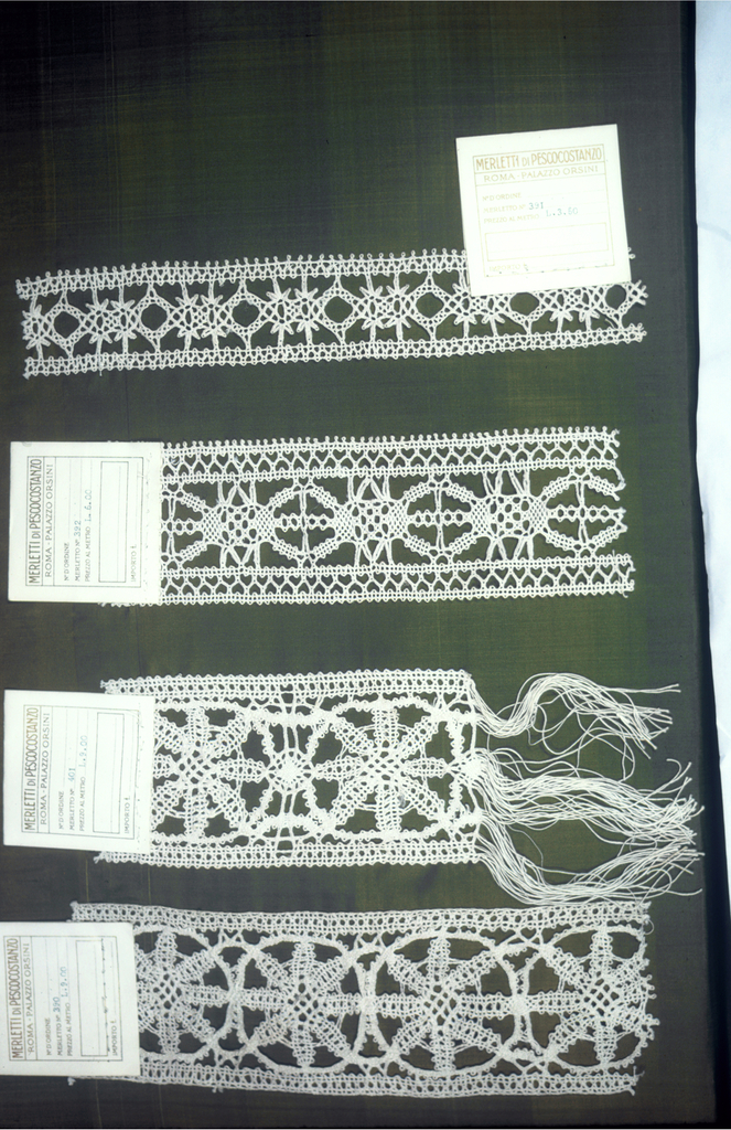 <ref name=CH>{{cite web |url=https://www-6.collection.cooperhewitt.org/objects/18556599/ |title=Sample Book Of Bobbin Lace (Italy) |author=Cooper Hewitt, Smithsonian Design Museum |accessdate=20 December 2025 |publisher=Smithsonian Institution}}</ref>