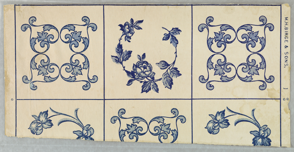 This is a Sidewall and border. It was manufactured by M.H. Birge & Sons Co.. It is dated 1890–1900 and we acquired it in 1939. Its medium is machine-printed, mica. It is a part of the Wallcoverings department.