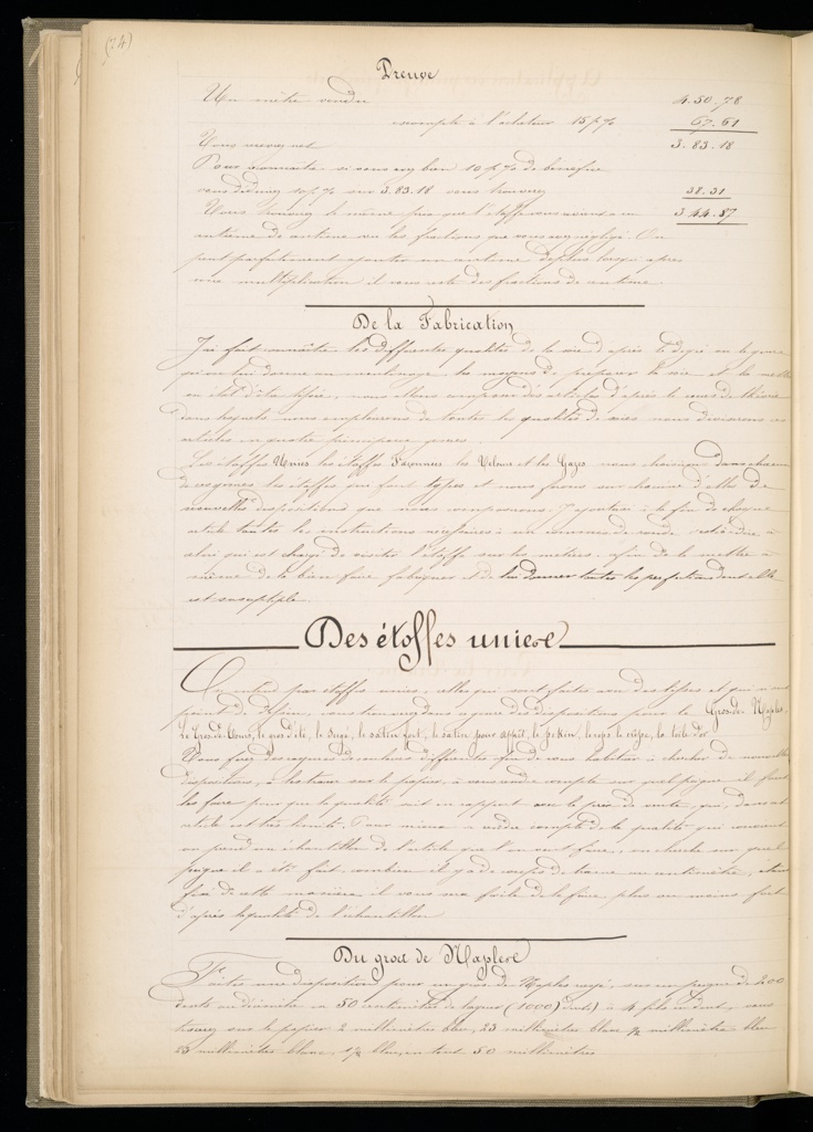 Master Weaver's Thesis Book, Systeme de la Mecanique a la Jacquard; France; label: board covers; pen and ink with gouache on paper pages; cotton, linen and silk samples; H x W x D (closed): 44.8 × 30.5 × 5.8 cm (17 5/8 × 12 × 2 5/16 in.) 440 pages; Museum purchase from Trustees' Book Appropriation; 1939-40-1