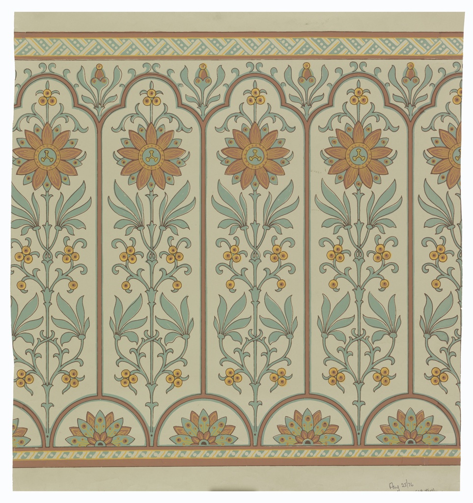 This is a frieze. It is dated ca. 1880 and we acquired it in 1940. Its medium is machine-printed paper. It is a part of the Wallcoverings department.