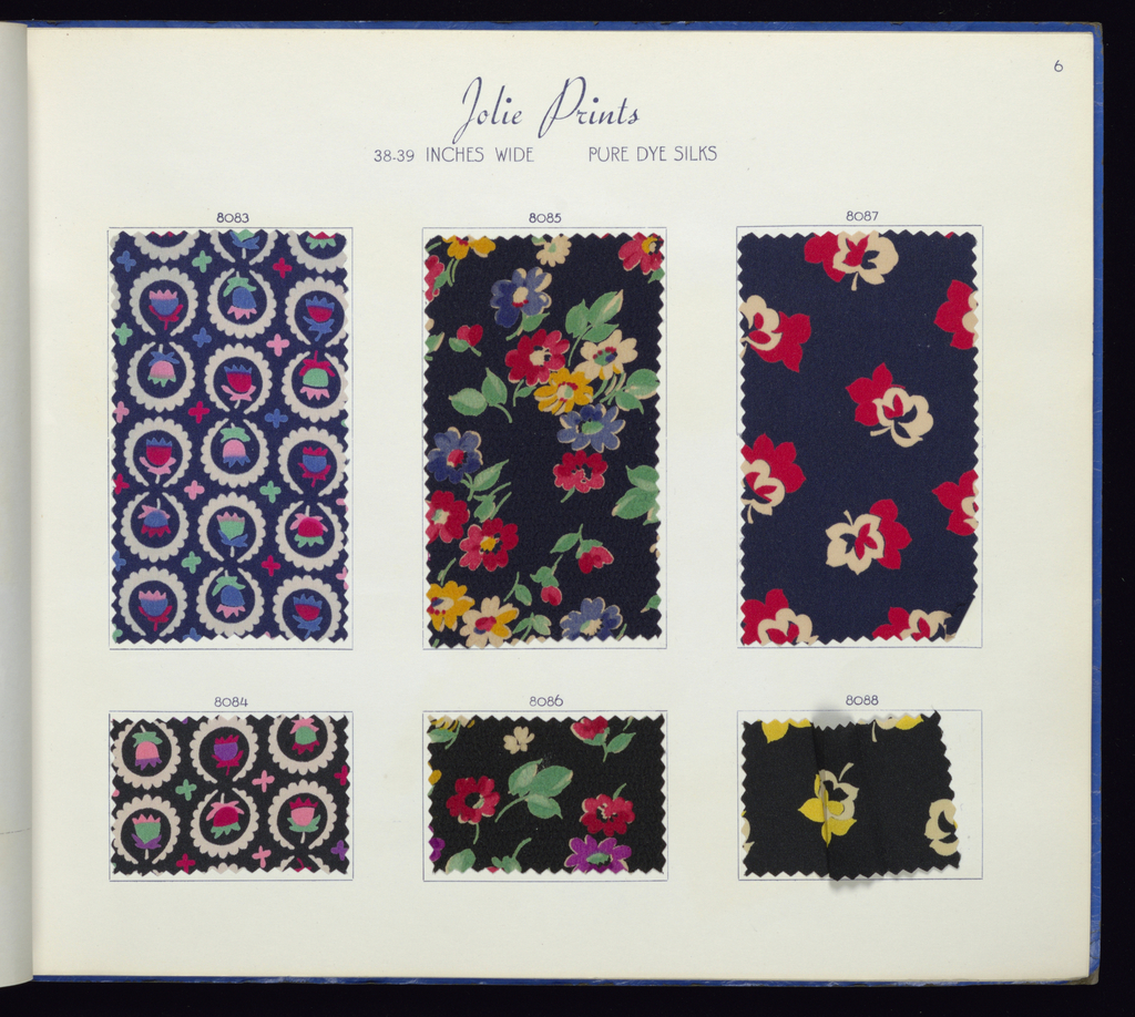 This is a Manufacturer's sample book. It is dated 1939 and we acquired it in 1939. Its medium is silk, rayon, linen, paper and its technique is printed. It is a part of the Textiles department.