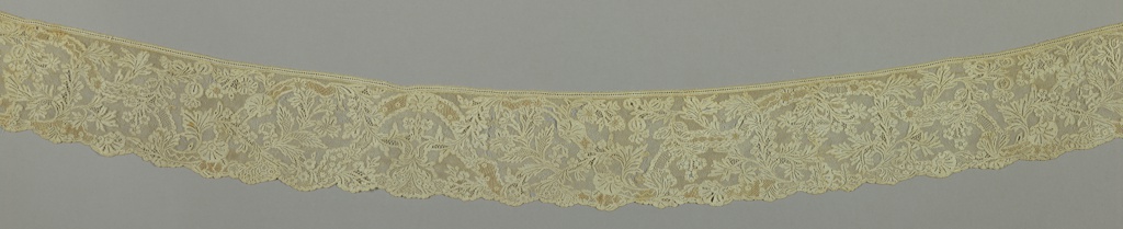 This is a Borders. It is dated 18th century and we acquired it in 1939. Its medium is linen and its technique is needle lace with ground of loop and twist with twist return. It is a part of the Textiles department.