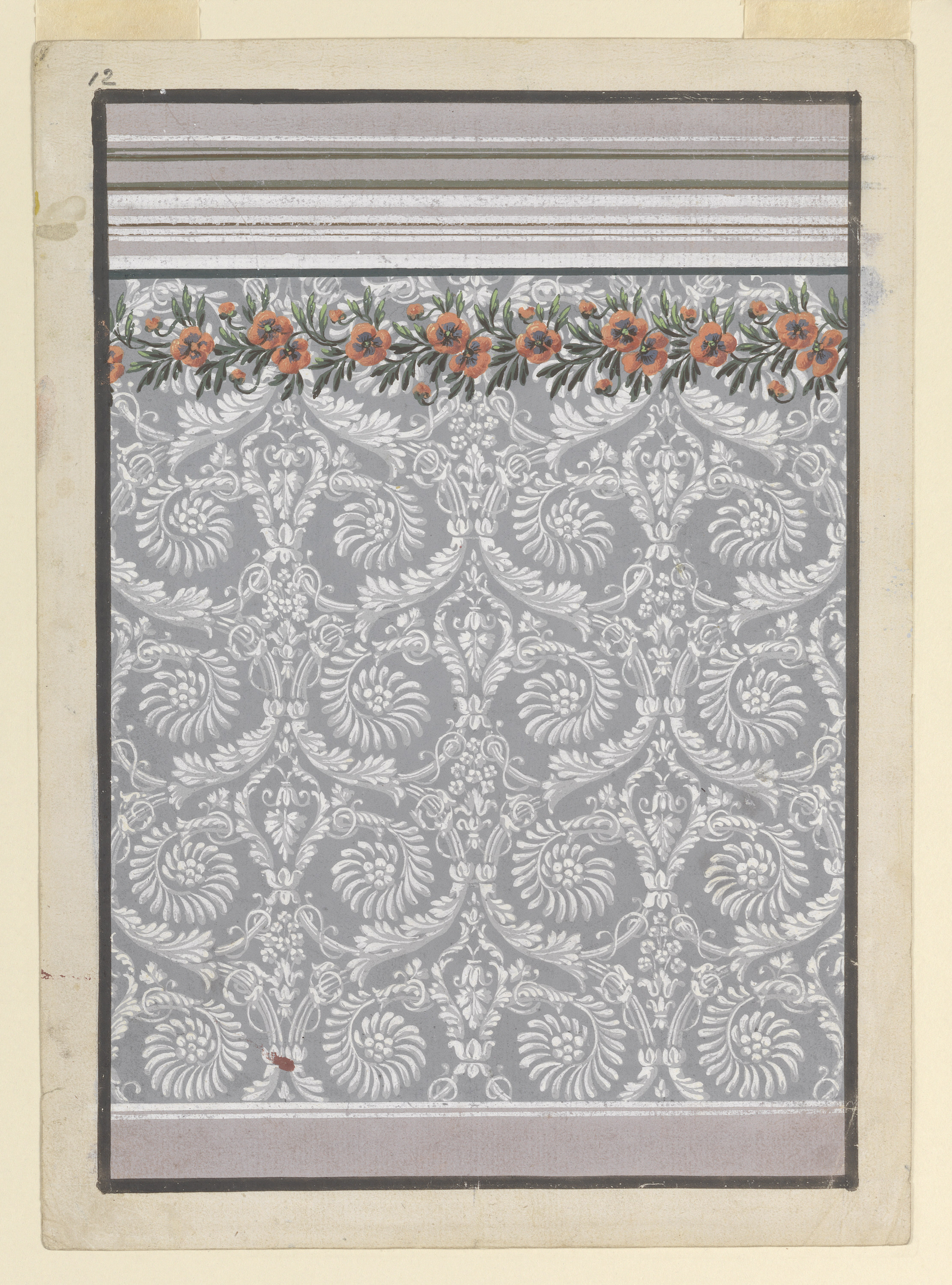 Drawing, Design for a Painted Wall Decoration; Austria; brush and watercolor, gouache, graphite on heavy white wove paper; 35.7 x 26.5 cm (14 1/16 x 10 7/16 in.); Museum purchase through gift of Mary Hearn Greims; 1940-120-4