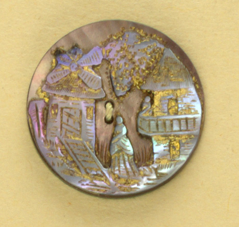 This is a Button. It is dated 1880–90 and we acquired it in 1940. Its medium is pearl shell carved,gilded. It is a part of the Product Design and Decorative Arts department.