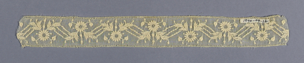 This is a Textile. We acquired it in 1940. Its technique is embroidery (white-on-white). It is a part of the Textiles department.