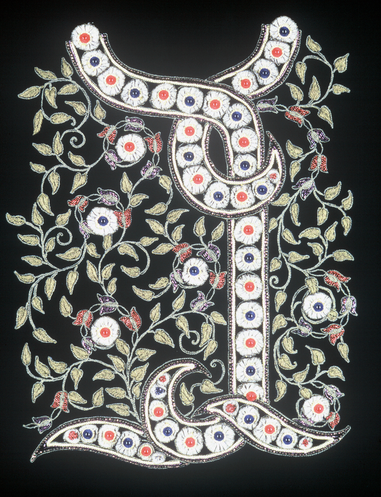Embroidery Sample (USA); Made by Madame Sabo, Inc. (New York, NY, USA); silk, metallic ribbon, glass beads; H x W: 62 x 49.5 cm (24 7/16 x 19 1/2 in.); Gift of Madame Sabo; 1941-24-2
