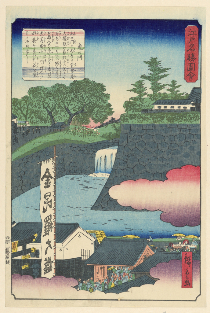Print, Castle Moat; Ando Hiroshige (Japanese, 1797 - 1858); Japan; woodblock print in colored ink on paper; Gift of the Estate of Mrs. Robert H. Patterson; 1941-31-328