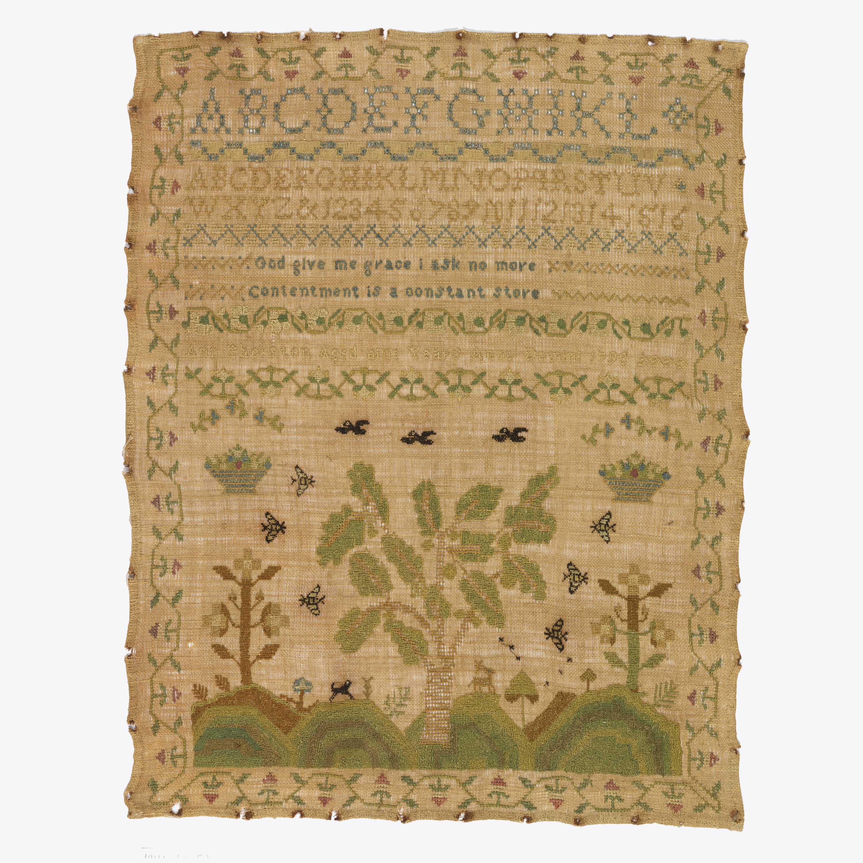 Sampler (USA); Embroidered by Ann Thornton, American; silk embroidery on linen foundation; H x W: 43 x 34 cm (16 15/16 x 13 3/8 in.); Bequest of Mrs. Henry E. Coe; 1941-69-52