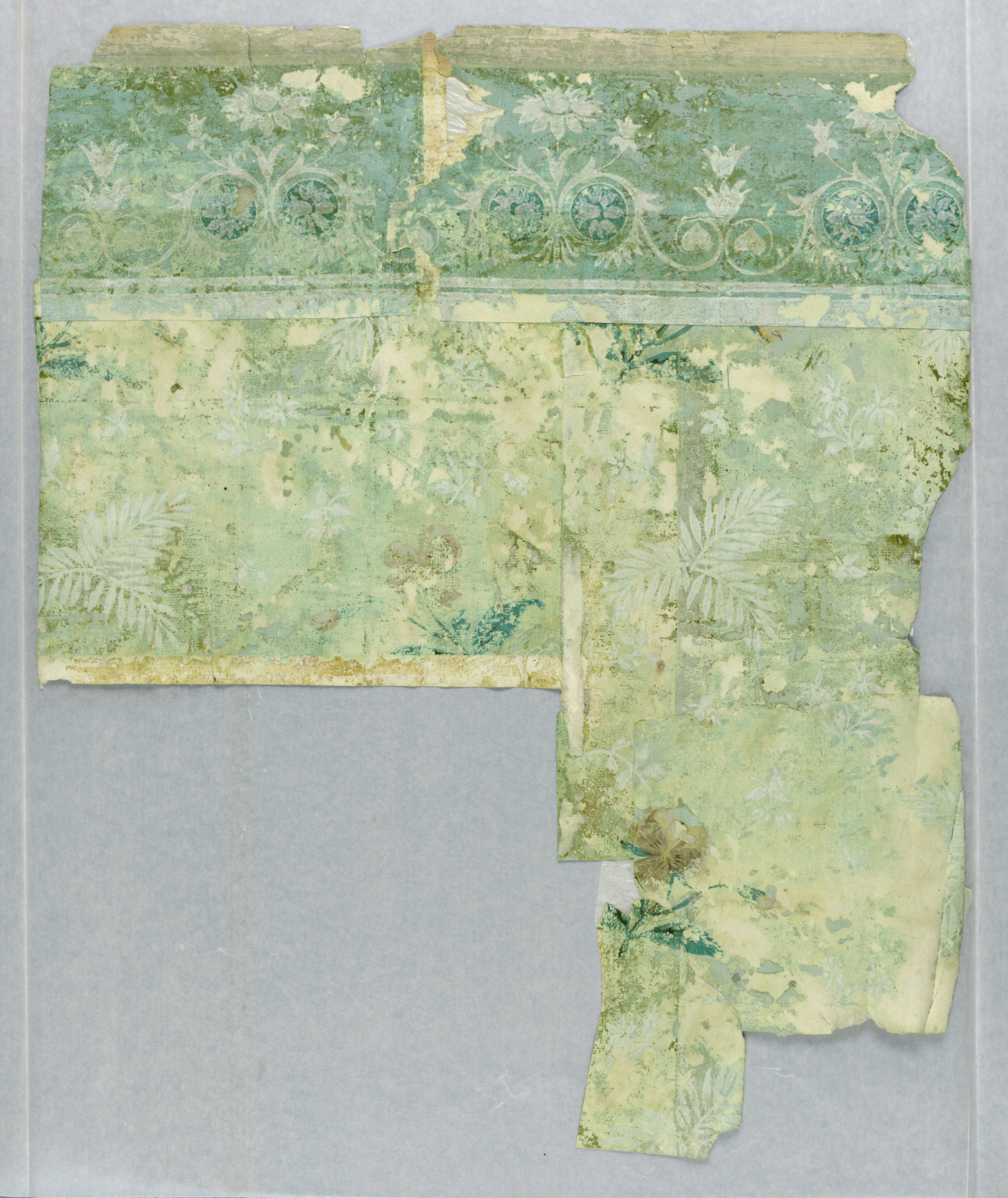 This is a Sidewall and border. It is dated 1805–20 and we acquired it in 1941. Its medium is block-printed on handmade paper. It is a part of the Wallcoverings department.