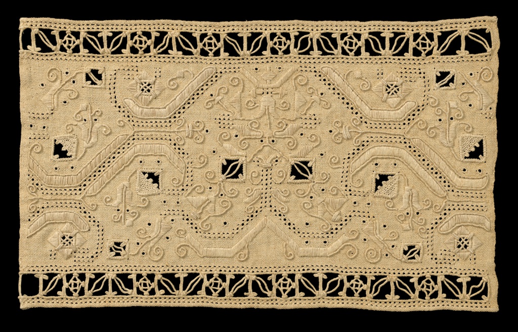 This is a Sampler. It was made by Scuola d'Industrie Italiane and embroidered by Miss Francesca Amari. It is dated early 20th century and we acquired it in 1942. Its medium is linen and its technique is satin, overcast, buttonhole and hem stitch on plain weave. It is a part of the Textiles department.