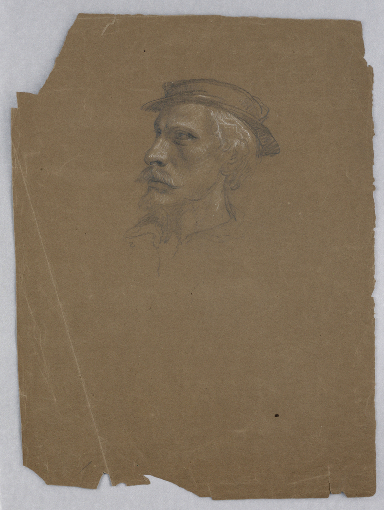 Drawing, Study of Titian for "Titian Showing the Entombment to Charles V and Clement VII"; Daniel Huntington (American, 1816–1906); USA; graphite, white chalk on brown wove paper; 31.9 x 23.4 cm (12 9/16 x 9 3/16 in.); Bequest of Erskine Hewitt; 1942-50-240
