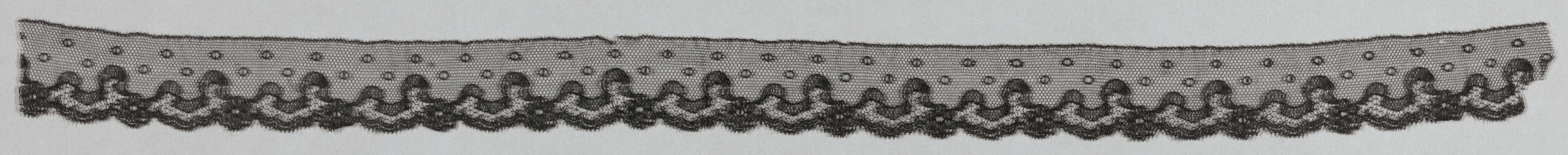 This is a Fragment. It is dated 1850–99 and we acquired it in 1942. Its medium is silk and its technique is machine made. It is a part of the Textiles department.