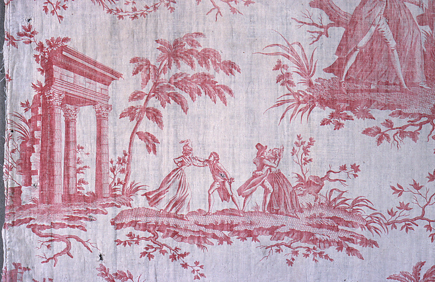 This is a Textile. It was produced by Petitpierre et Cie. It is dated ca. 1795 and we acquired it in 1944. Its medium is cotton, linen and its technique is printed by engraved copper plate on plain weave. It is a part of the Textiles department.