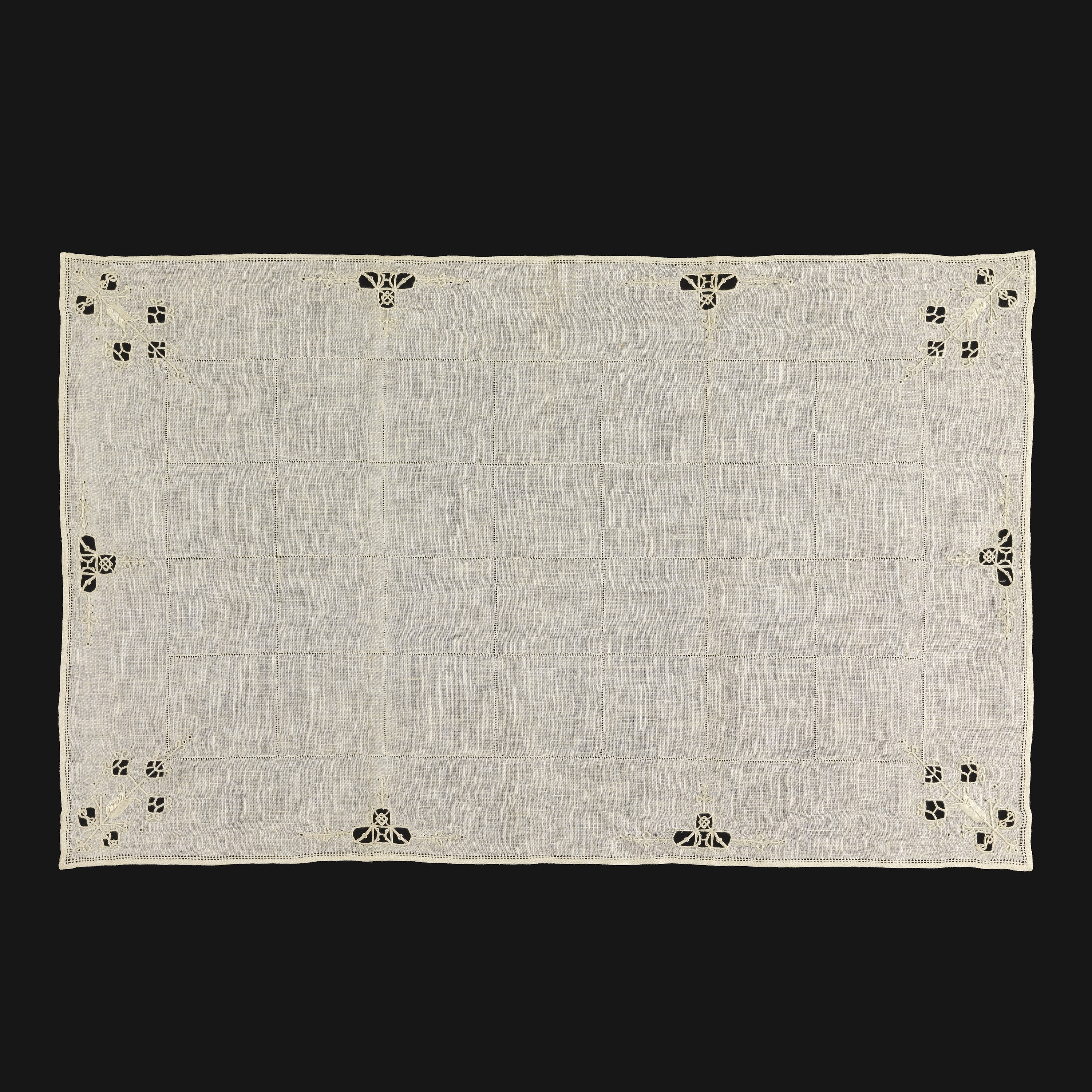 Table Cover (USA); Made by Sybil Carter Indian Mission and Lace Industry Association (United States); linen; H x W: 68 x 42.3 cm (26 3/4 x 16 5/8 in.); Gift of Mrs. William Bayard Cutting in memory of Mary E. Parsons; 1943-44-13