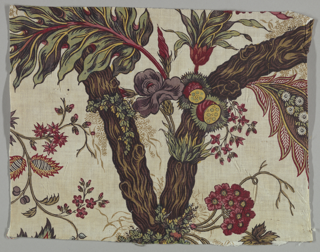 This is a Textile. It was manufactured by Soehnee L'Aine et Cie. It is dated ca. 1799 and we acquired it in 1943. Its medium is cotton and its technique is block printed on plain weave. It is a part of the Textiles department.