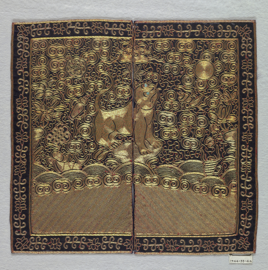 This is a Rank badge. We acquired it in 1944. Its medium is embroidered. It is a part of the Textiles department.