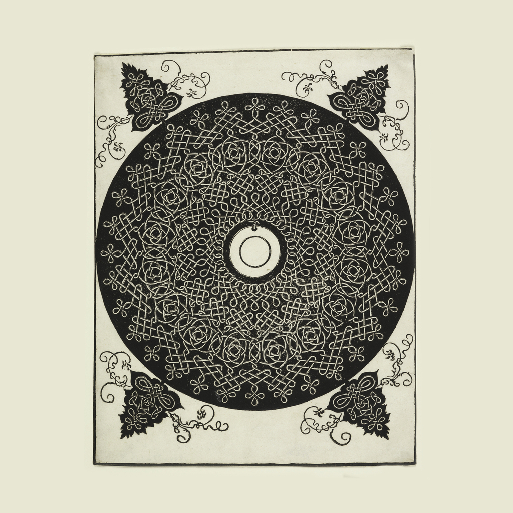 The intended purpose of this enigmatic interlaced design, one of six similar motifs produced by Albrecht Dürer after designs by Leonardo da Vinci, is unknown. It may have served as a pattern for embroidery or textiles, or as a demonstration of the artist’s craftsmanship.