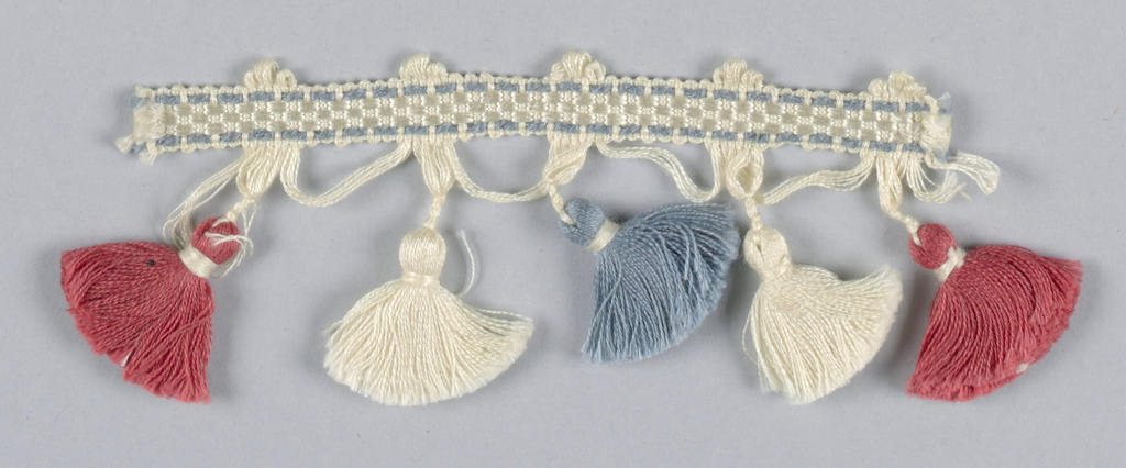 This is a Fringe fragment. It is dated ca. 1940 and we acquired it in 1944. Its medium is silk, mercerized cotton. It is a part of the Textiles department.