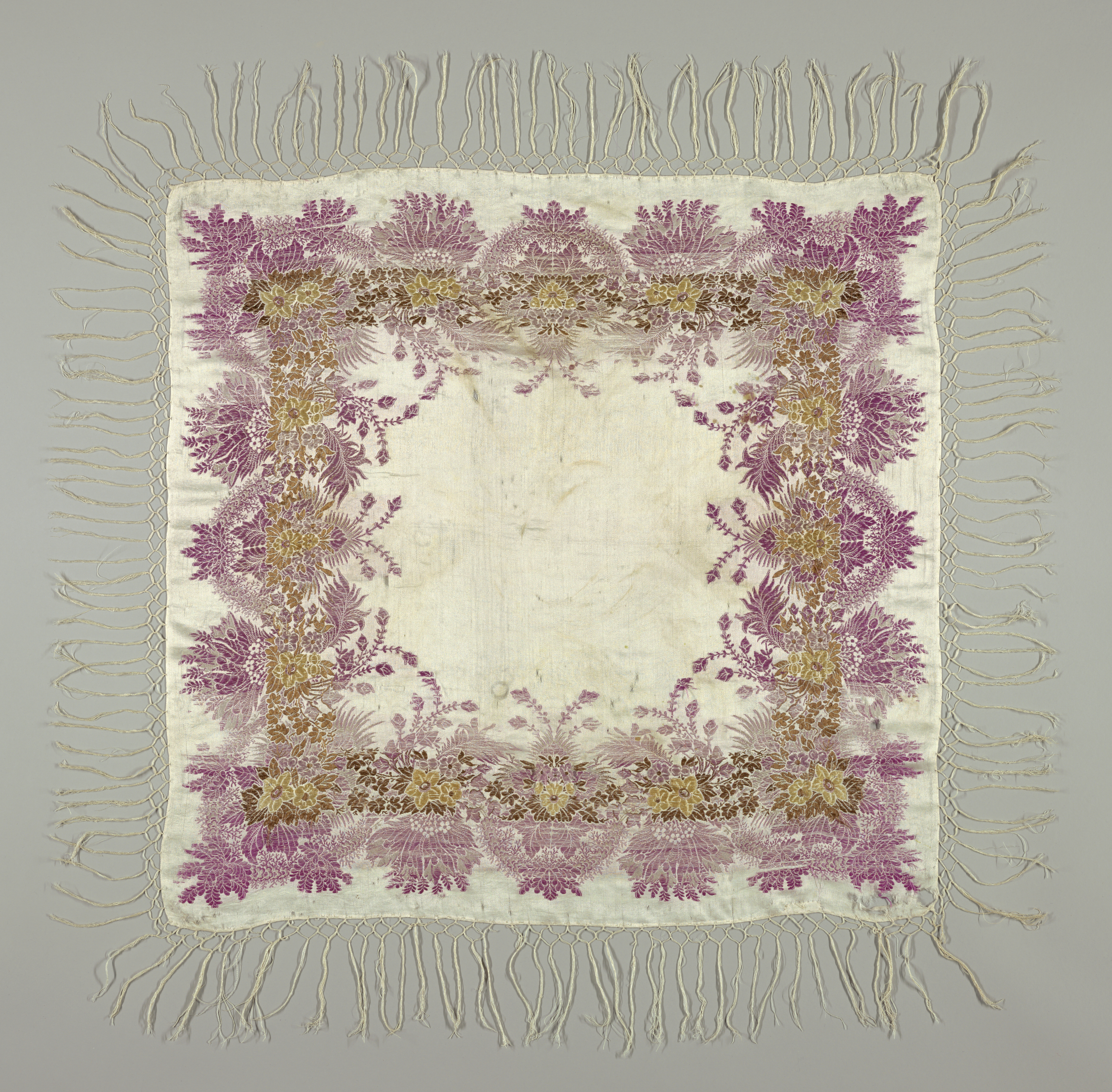 This is a Square. It is dated 19th century and we acquired it in 1945. Its medium is silk. It is a part of the Textiles department.