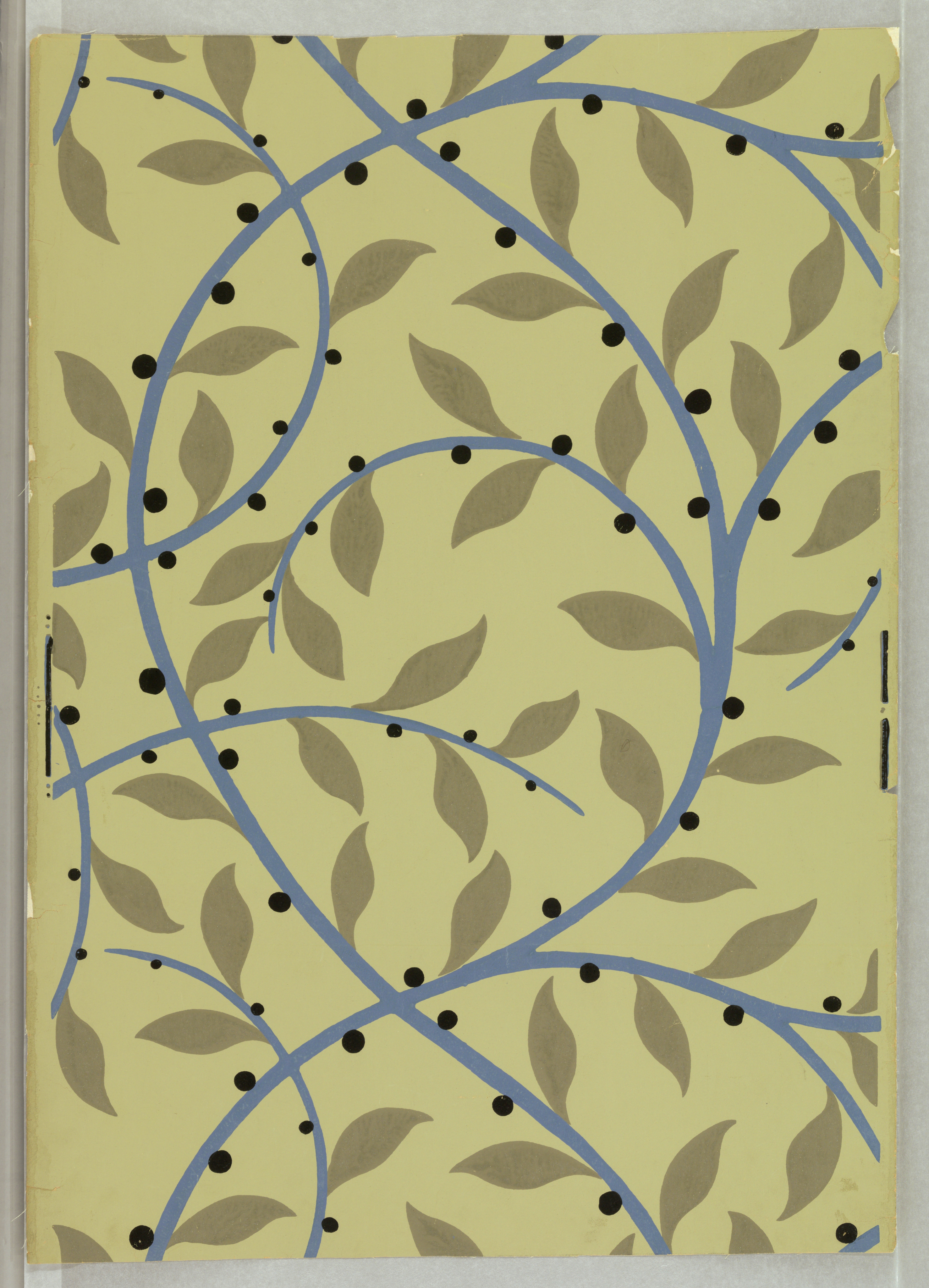 This is a Sidewall. It was designed by René Crevel and distributed by Nancy McClelland, Inc.. It is dated 1920 and we acquired it in 1945. Its medium is block printed on paper. It is a part of the Wallcoverings department.