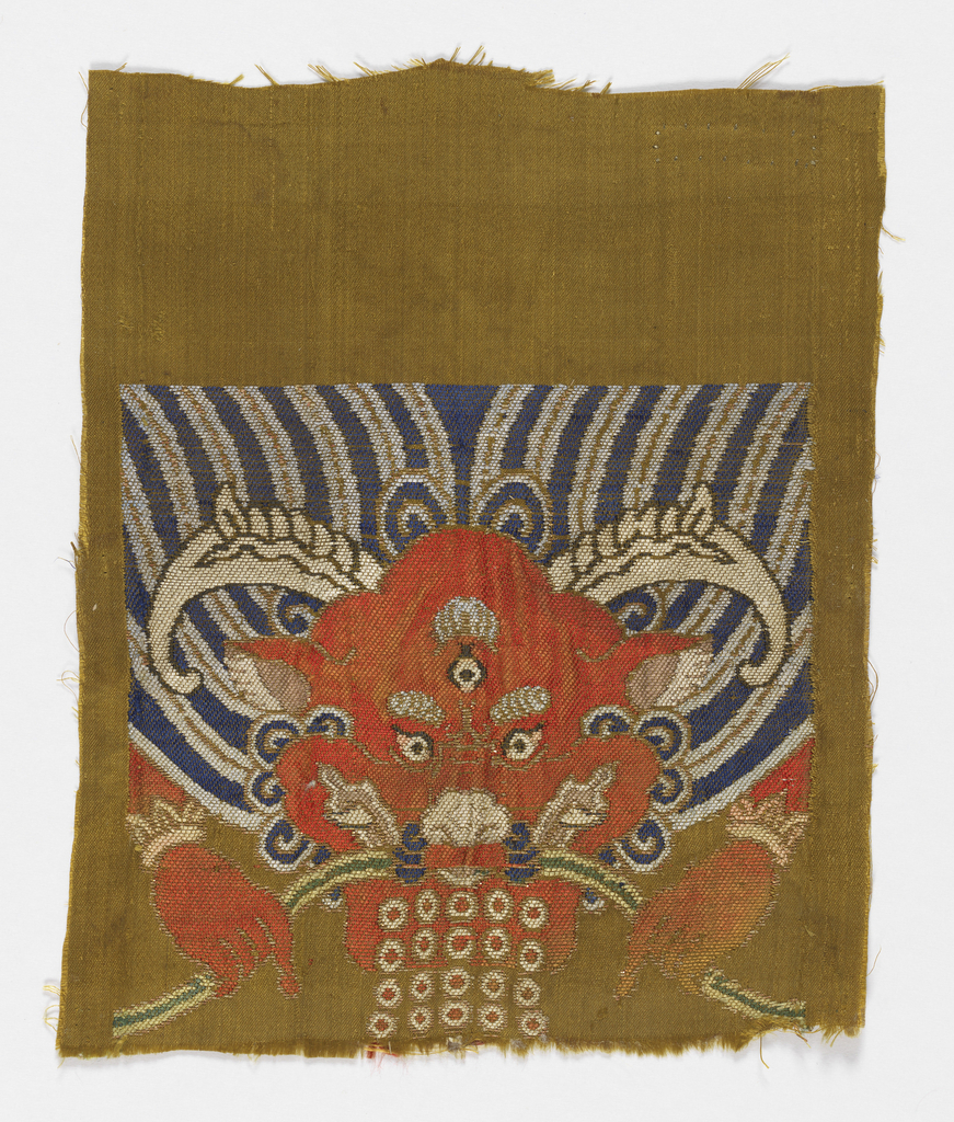 This is a Textile. We acquired it in 1945. Its medium is silk, paper with applied gold foil and its technique is plain compound satin. It is a part of the Textiles department.