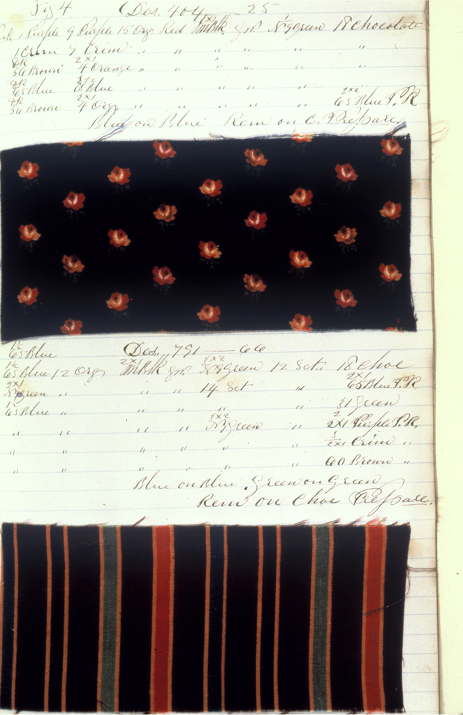 This is a Printer's sample book. It is dated 1868–69 and we acquired it in 1945. It is a part of the Textiles department.