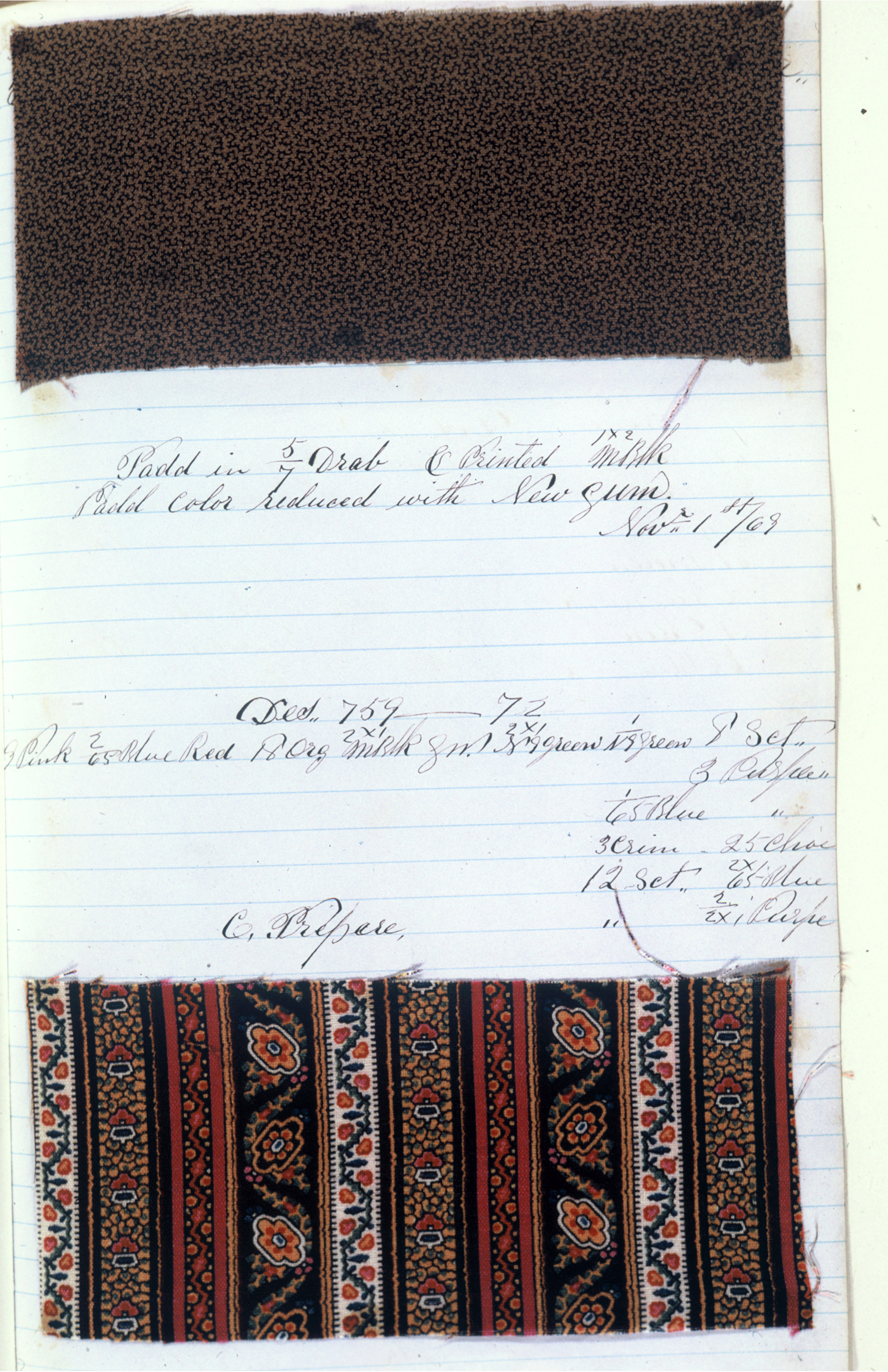 This object was donated by Frederick J. Whitehead. It is credited Gift of Frederick J. Whitehead from the collection compiled by his father Cornelius Whitehead at the Pacific Print Works of Lawrence, Massachusetts.