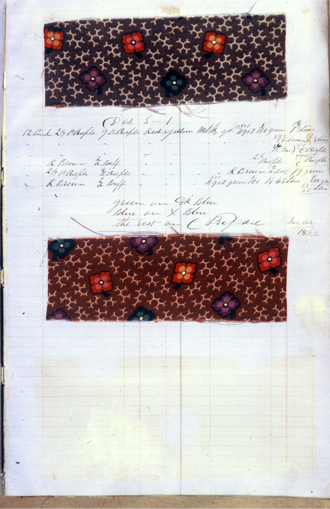 Dyer's Record Book (USA); Manufactured by Old Pacific Print Works; paper, cotton, wool; Gift of Frederick J. Whitehead from the collection compiled by his father Cornelius Whitehead at the Pacific Print Works of Lawrence, Massachusetts; 1945-55-2