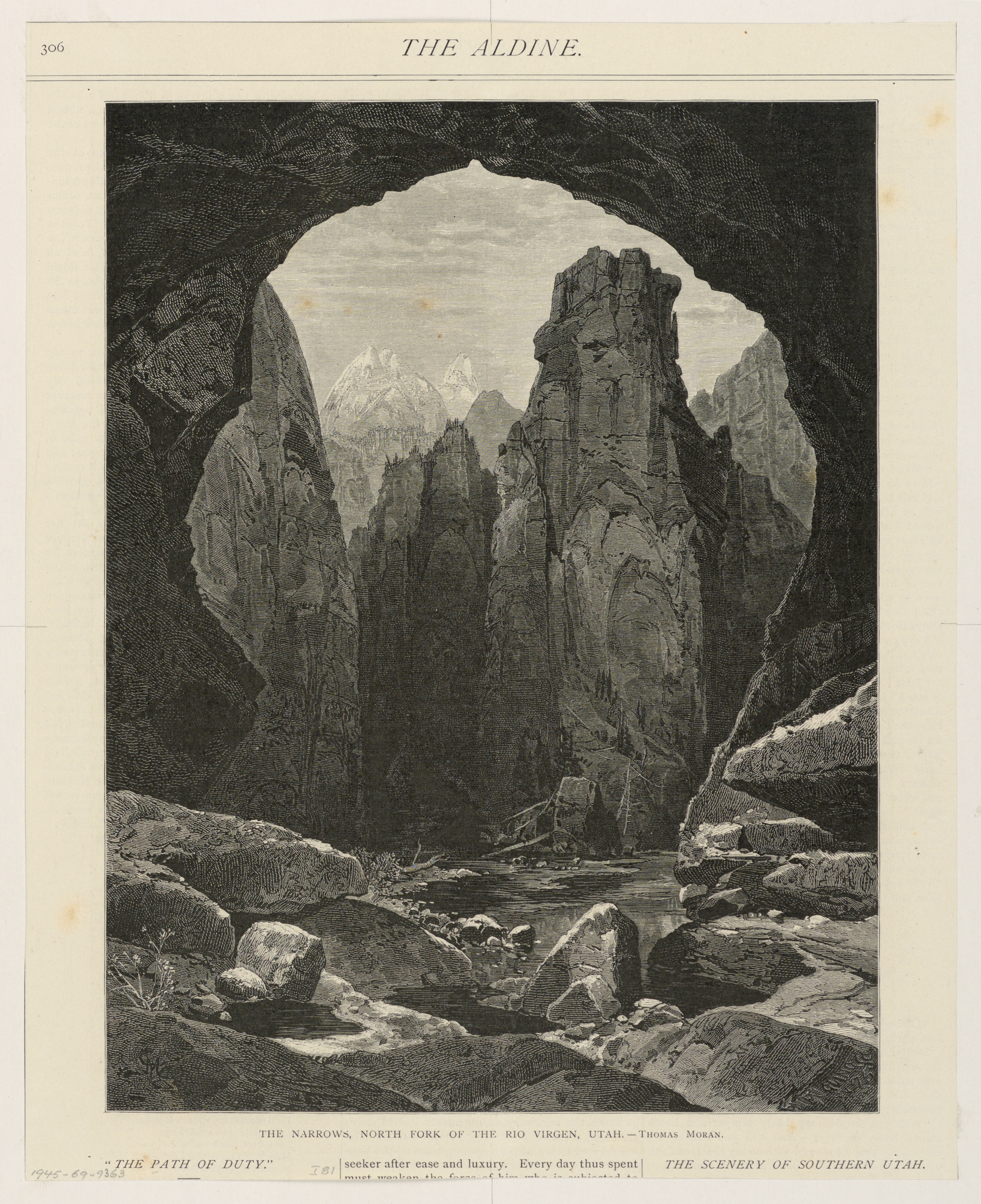 <ref name=CH>{{cite web |url=https://www-6.collection.cooperhewitt.org/objects/18601431/ |title=Print, The Narrows, North Fork of the Rio Virgen, Utah |author=Cooper Hewitt, Smithsonian Design Museum |accessdate=20 December 2025 |publisher=Smithsonian Institution}}</ref>