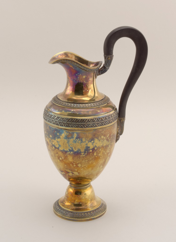 Milk Jug Milk Jug; Made by Jean-Baptiste-Claude Odiot (French, 1763 - 1850), Charles Nicolas Odiot (French, 1789 - 1869); France; silver, gold, wood; H x W x D: 24.5 × 12.5 × 7.5 cm (9 5/8 × 4 15/16 × 2 15/16 in.); Gift of James Hazen Hyde; 1946-76-2