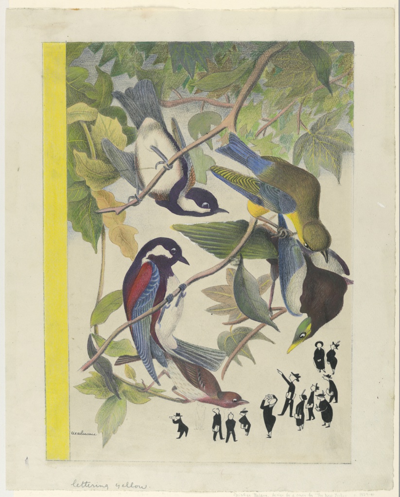This is a Drawing. It was designed by Christina Malman and made for (as the client) The New Yorker Magazine. It is dated ca. 1939 and we acquired it in 1948. Its medium is graphite, pen and ink, brush and watercolor, crayon on off-white laid paper. It is a part of the Drawings, Prints, and Graphic Design department.