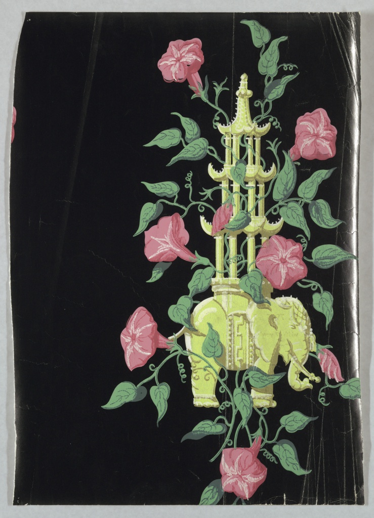 Sidewall - Sample, Lucky Elephant of Siam; Kayser & Allman; Manufactured by United Wallpaper, Inc.; USA; machine-printed paper; 47 x 33 cm (18 1/2 x 13 in.); Gift of Henry H. Allman; 1947-81-15