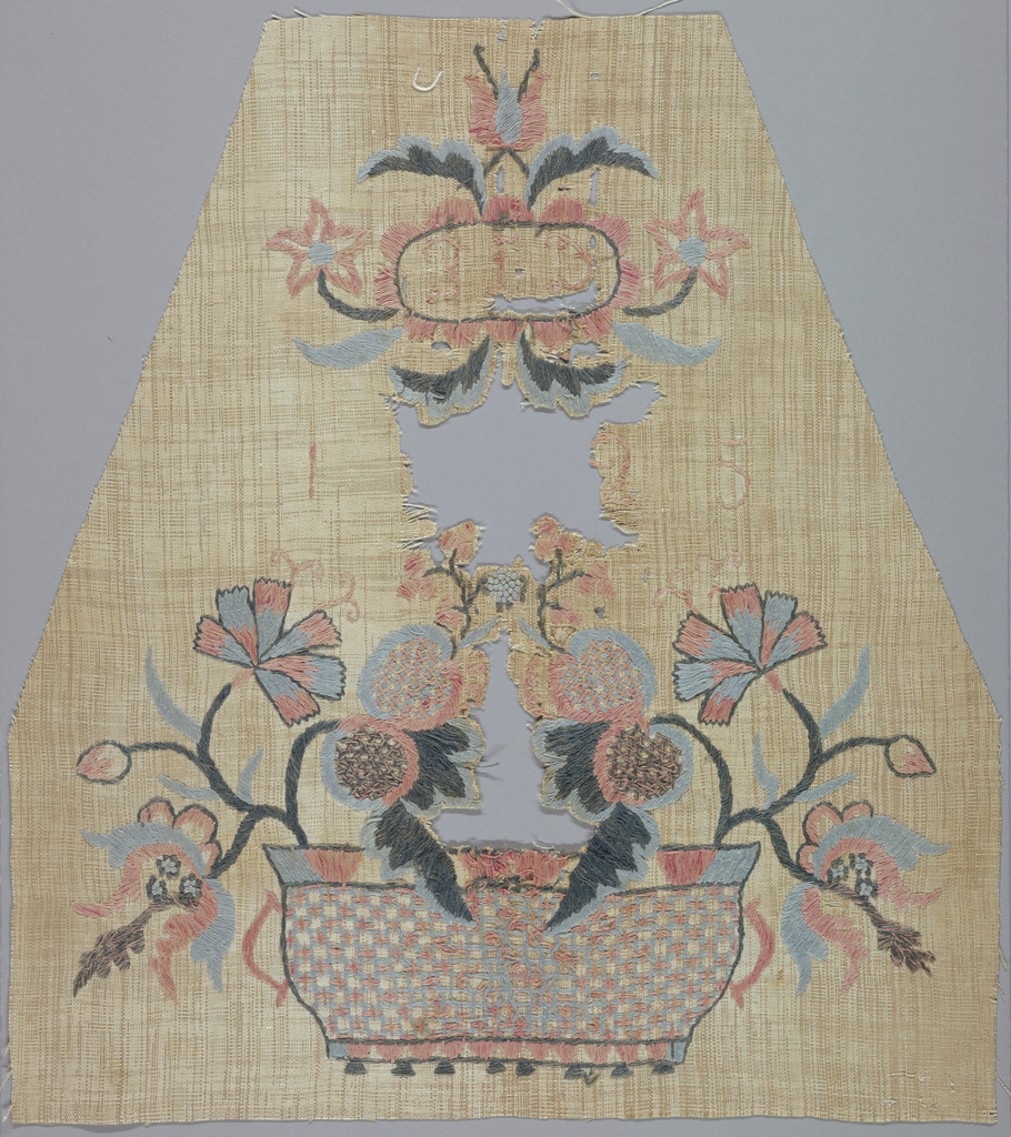 This is a Fragment. It is dated 19th century and we acquired it in 1947. Its medium is cotton on bast fiber and its technique is embroidered. It is a part of the Textiles department.