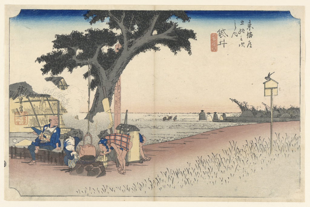 Print, Fukuroi Teahouse, in The Fifty-Three Stations of the Tokaido Road (Tokaido Gojusan Tsugi-no Uchi); Ando Hiroshige (Japanese, 1797 - 1858); Japan; woodblock print (ukiyo-e) on mulberry paper (washi), ink with color; 23.7 x 36.4 cm (9 5/16 x 14 5/16 in.); Gift of Mary Rutherford Jay; 1948-134-28