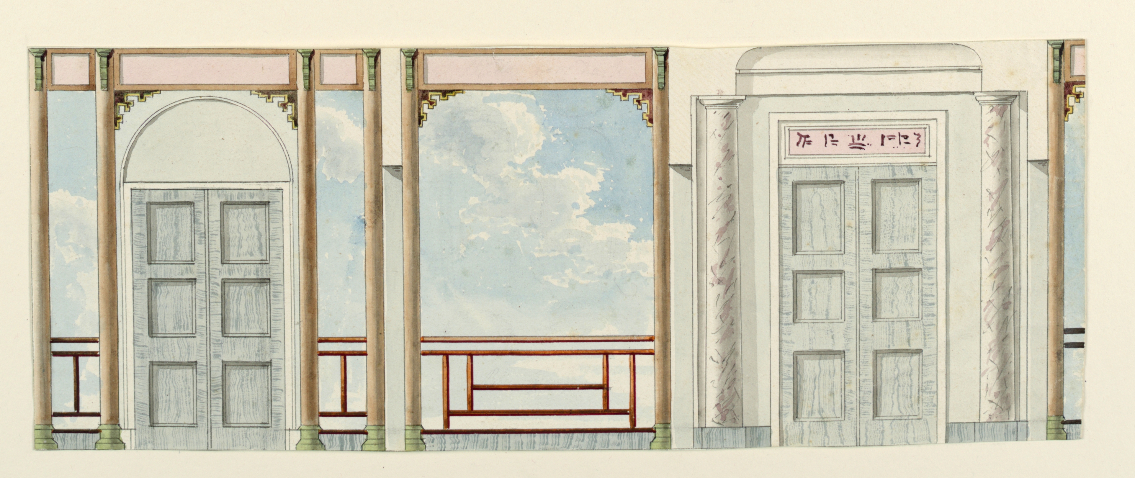<ref name=CH>{{cite web |url=https://www-6.collection.cooperhewitt.org/objects/18609993/ |title=Drawing, Wall Decoration and Door with Columns, Royal Pavilion, Brighton |author=Cooper Hewitt, Smithsonian Design Museum |accessdate=19 December 2025 |publisher=Smithsonian Institution}}</ref>