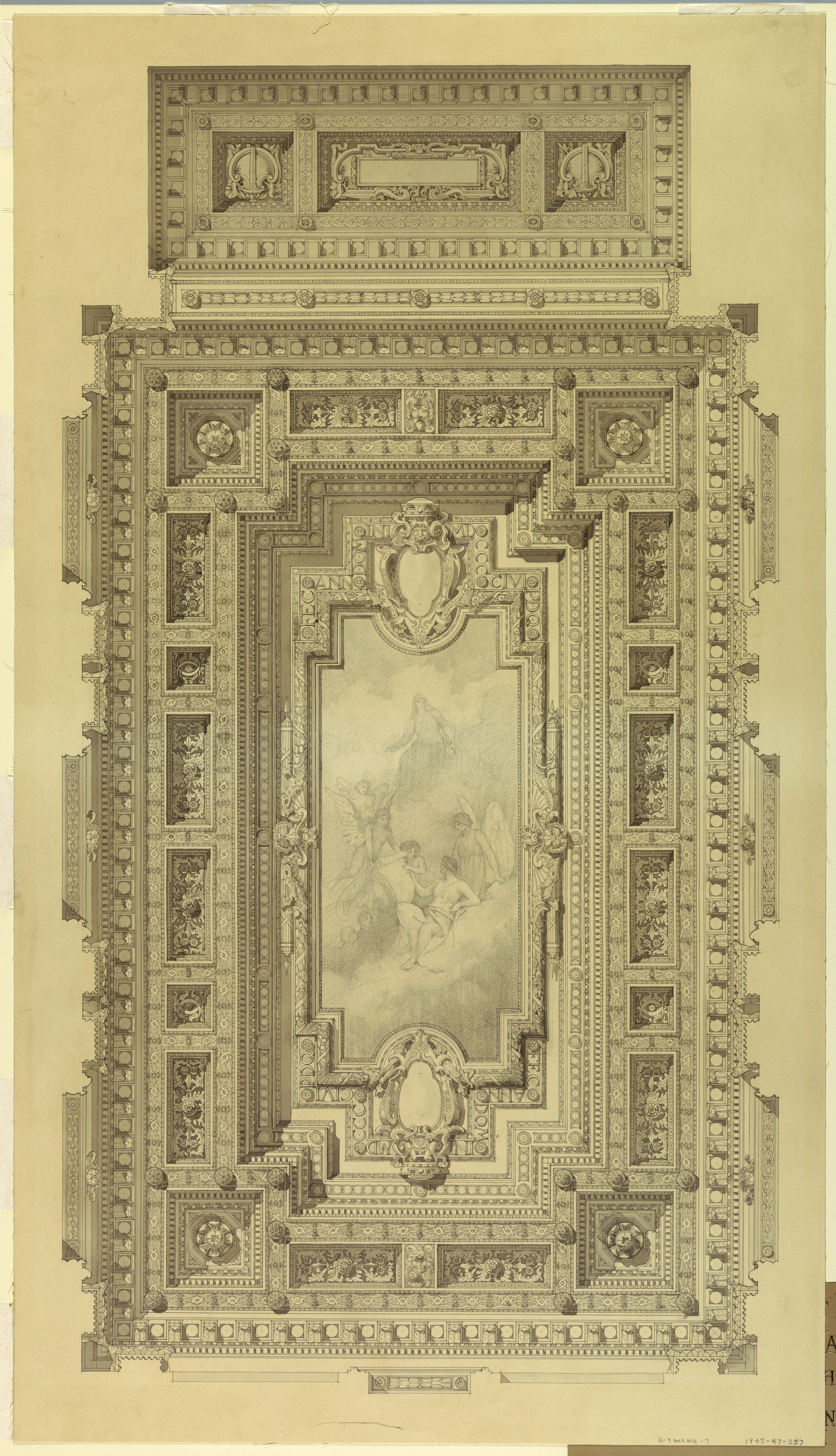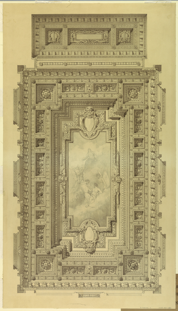 Drawing, Ceiling of Courtroom, Federal Building, Cleveland, OH; Architect: Arnold William Brunner (American, 1857–1925); USA; graphite, pen and black ink, brush and gray wash on paper; 90.5 x 51.8 cm (35 5/8 x 20 3/8 in.); Gift of Mrs. Arnold W. Brunner; 1948-47-357