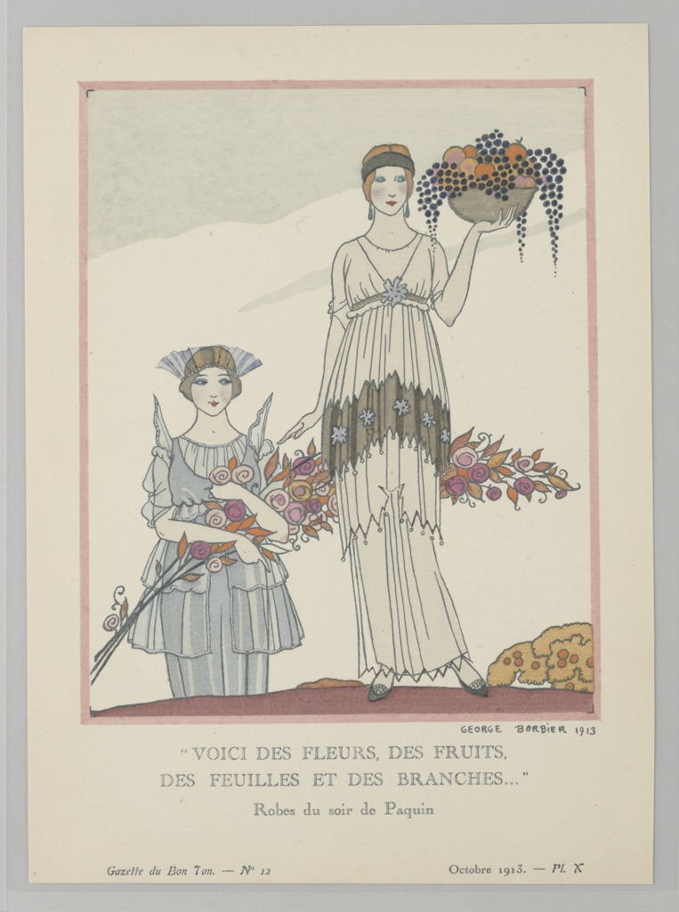 “VOICI DES FLEURS, DES FRUITS, DES FEUILLES ET DES BRANCHES…” Robe du soir de Paquin, Gazette du Bon Ton-No 12, Octobre 1913.-Pl. X