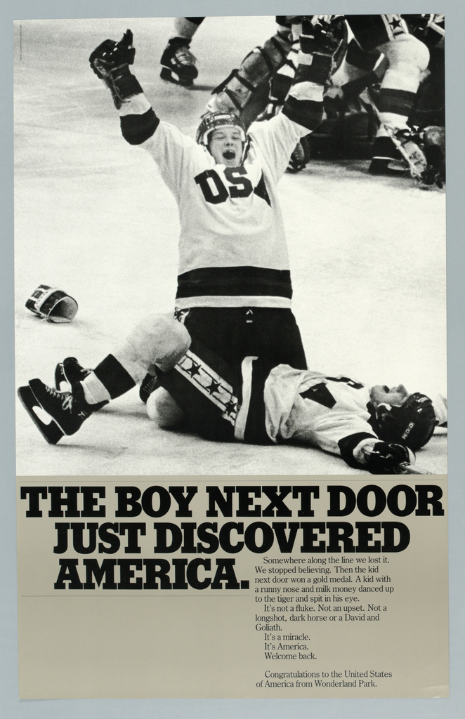 Poster, The Boy Next Door Just Discovered America; Photographed by Boston Globe; USA; offset lithograph on paper; Gift of Various Donors; 1981-29-114