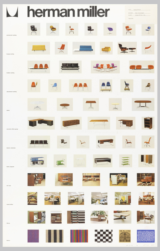 This is a Poster. It was made for (as the client) Herman Miller Furniture Company. It is dated ca. 1972 and we acquired it in 1981. Its medium is offset lithograph on paper. It is a part of the Drawings, Prints, and Graphic Design department.