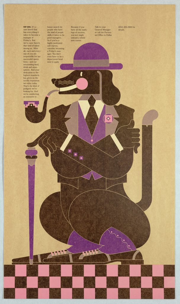 Poster, Top Dog; Designed by Woody Pirtle (b. 1945); USA; lithograph on paper; 57.1 x 33.5 cm (22 1/2 x 13 3/16 in.); Gift of Various Donors; 1981-29-320