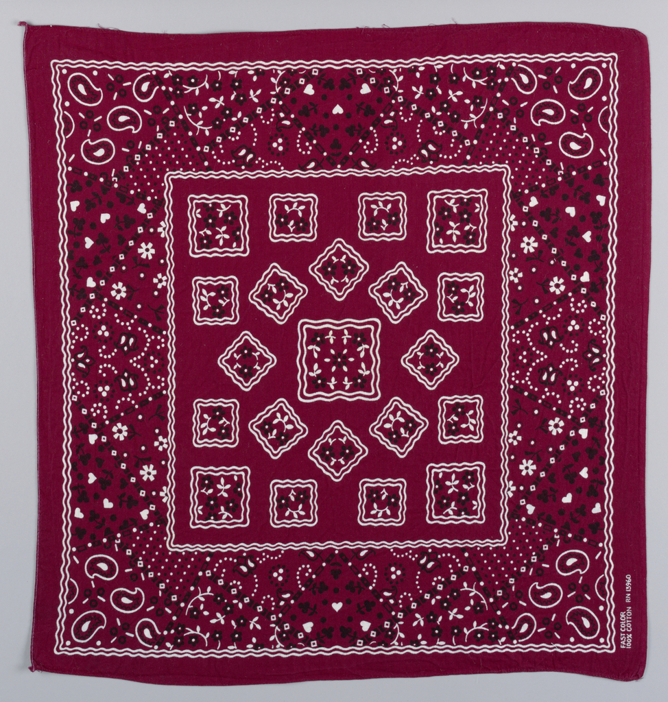 <ref name=CH>{{cite web |url=https://www-6.collection.cooperhewitt.org/objects/18620819/ |title=Bandana (USA) |author=Cooper Hewitt, Smithsonian Design Museum |accessdate=19 December 2025 |publisher=Smithsonian Institution}}</ref>