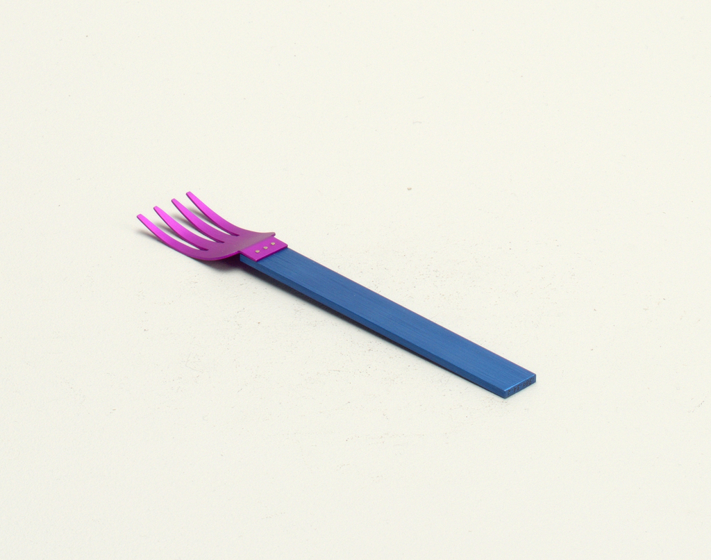 Signature Collection: Picnic Flatware Fork; USA; anodized aluminum; L x W x D: 17.5 x 2.7 x 0.8 cm (6 7/8 x 1 1/16 x 5/16 in.); Museum purchase from Eleanor G. Hewitt Fund; 1986-94-2